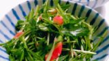 こちらもあっさり系のサラダです。脂でこってりなビーフンにポン酢でさっぱりの水菜サラダが合いますよ。